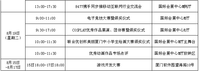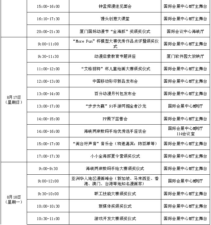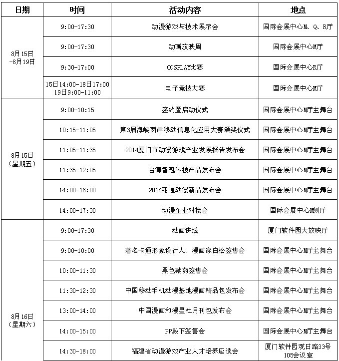 2014年(第七屆)廈門國際動(dòng)漫節(jié)主要活動(dòng)一覽表